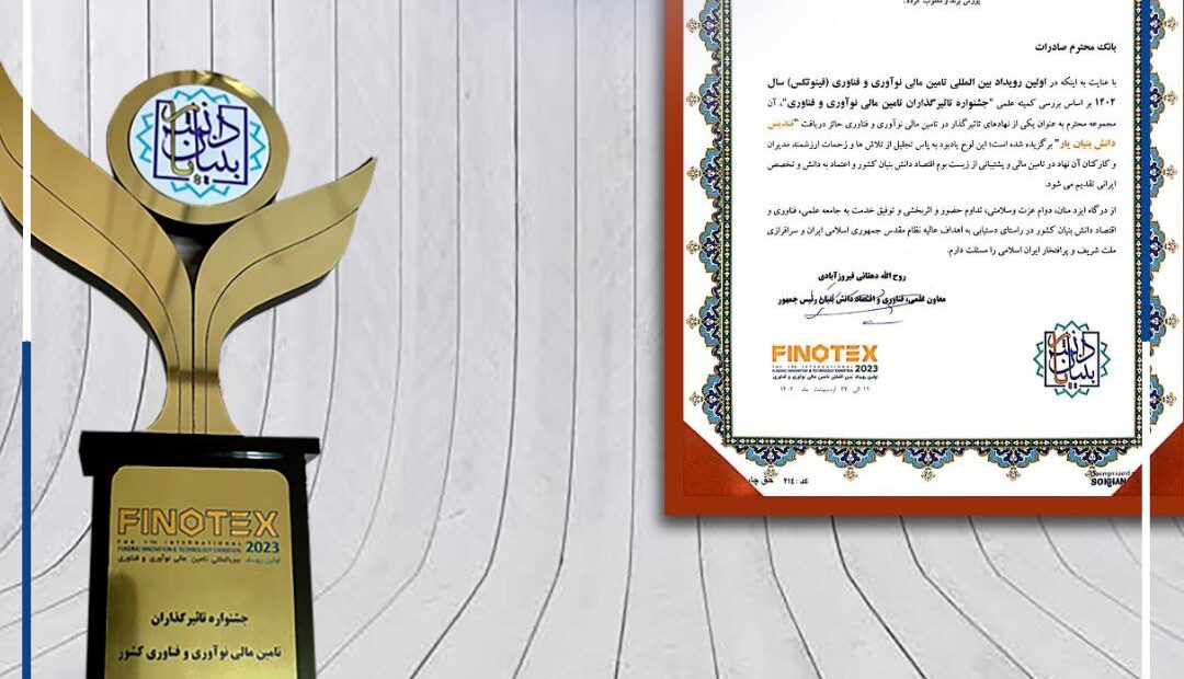 به گزارش پایگاه خبری توفیق اقتصادی، نخستین رویداد بین‌المللی تأمین مالی نوآوری و فناوری (فینوتکس۲۰۲۳) برگزار و به پاس تجلیل از تلاش‌ها و حمایت‌های ارزشمند مدیران و کارکنان این بانک در تأمین مالی و پشتیبانی از زیست‌بوم اقتصاد دانش‌بنیان کشور و اعتماد به دانش و تخصص ایرانی، لوح سپاس و تندیس ویژه «دانش‌بنیان یار» به بانک صادرات ایران اهدا شد.