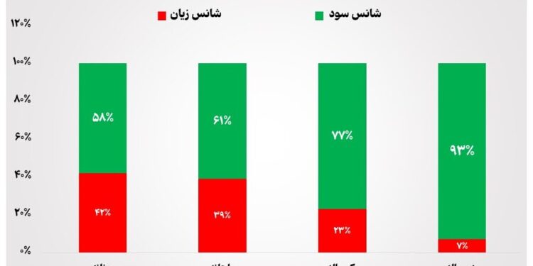 بن گراهام، پدر علم سرمایهگذاری که استاد و الهامبخش اسطورههایی مثل وارن بافت بوده، میگوید: «سرمایهگذار هوشمند به معنای هوش بالا نیست، بلکه فردی است که میتواند خود را بشناسد و نسبت به احساسات لحظهای مقاوم باشد. این سختترین کار است که در دوران خوشبینی مفرط، دارایی خود را کم کنید و در دوران بدبینی شدید، سهم آن دارایی را افزایش دهید.» در دل این توصیه عمیق این نکته نهفته است که نمیتوان بازار را در کوتاهمدت پیشبینی کرد. بررسی دادههای بورس تهران نیز نشان میدهد: مطابق نمودار اگر بازه سرمایهگذاری خود را به بیش از یک سال و تا پنج سال افزایش دهید، شانس برنده شدن شما به طرز محسوسی افزایش مییابد. اما در بازههای کوتاهمدت حدود ۶۰ درصد مواقع شکست میخورید. اینکه احساس کنیم از میانگین جامعه بهتر هستیم و شانس ما بین بازندگان نیست، همان خطایی است که بسیاری از سرمایهگذاران دچار آن میشوند.