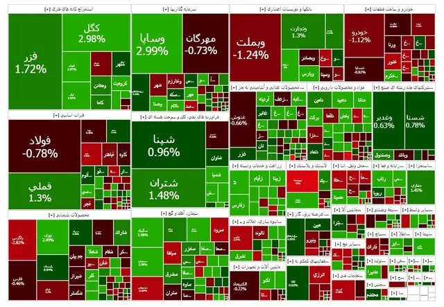 فملی، فارس و پارسان بیشترین تاثیر مثبت را بر شاخص بورس داشتند. از نمادهای پرتراکنش نیز میتوان به مهرگان، وبملت و خودرو اشاره کرد.
